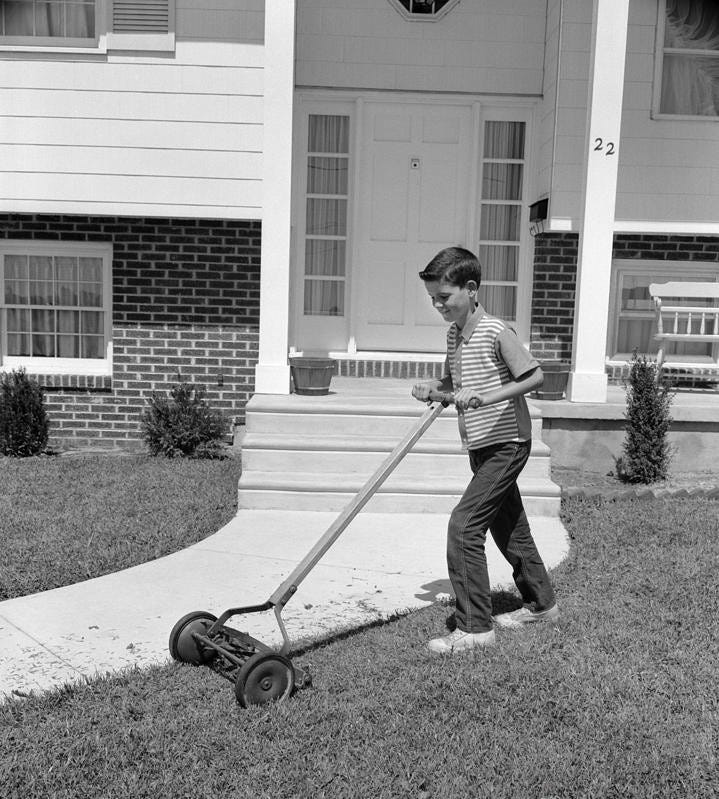 That afternoon, I mowed our lawn, the neighbor’s lawn, and the library’s lawn across the street from my house. The following day, I hand-raked these lawns and returned home a much less bored child.